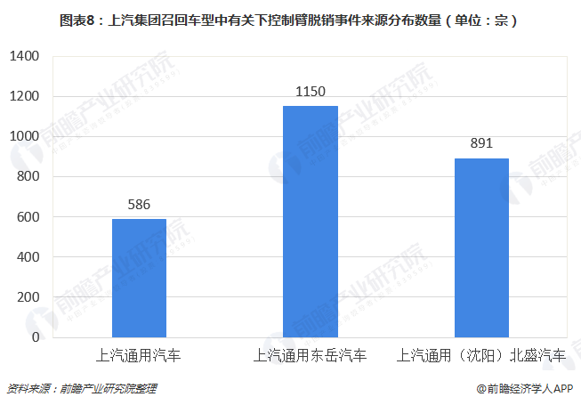 图表8:上汽集团召回车型中有关下控制臂脱销事件来源分布数量(单位:宗)